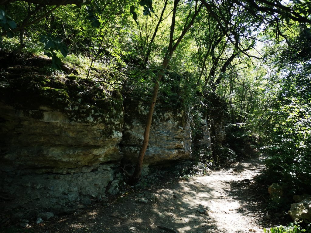 Alegem sa urcam catre grote. Poteca merge printre copaci si este initial abrupta cu pietre si radacini (Tip! urcati doar cu incaltaminte sport si nu in slapi altfel riscati sa va accidentati). Dupa urcusul scurt de aprox 50 m intram pe o panta mai lina si mergem inainte pana ajungem la o sapatura destul de interesanta in zid: Maarata Cave. Datorita apei care izvoraste de la baza grotei, roca s-a modelat in decursul anilor in ce vedeti mai jos.
