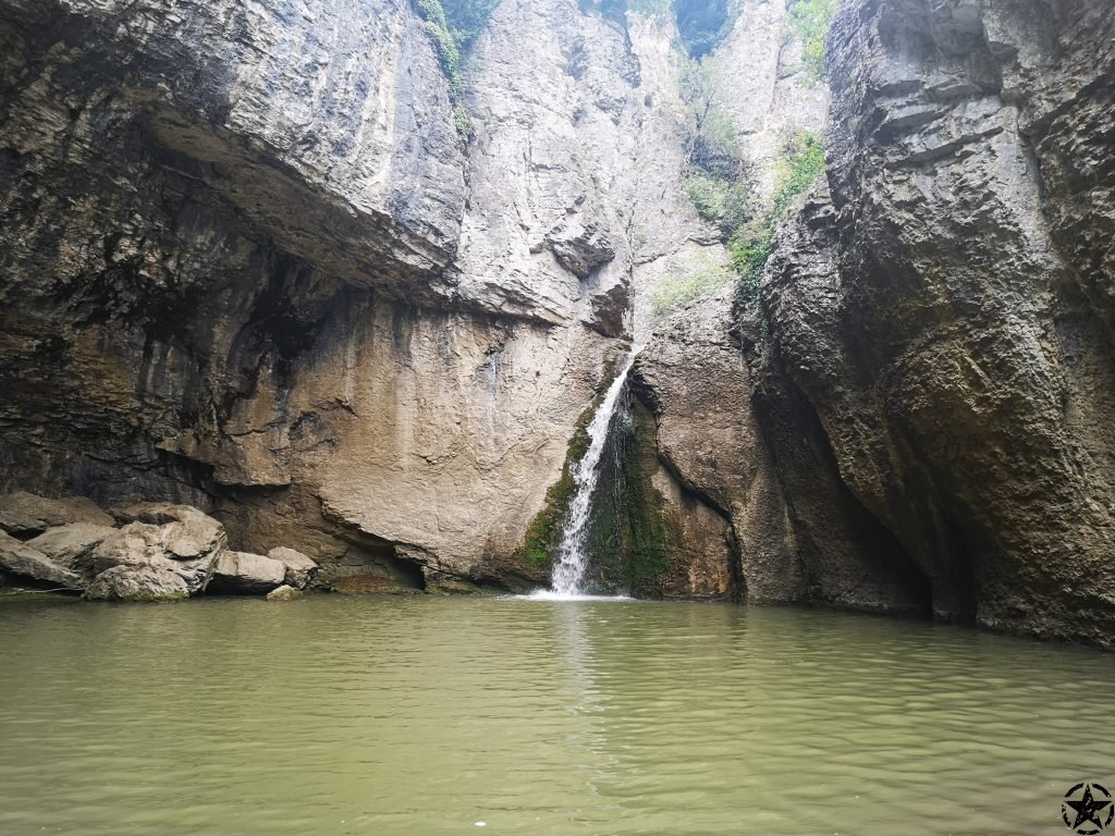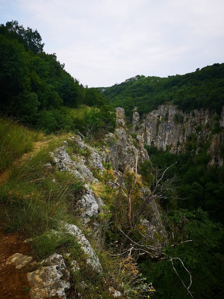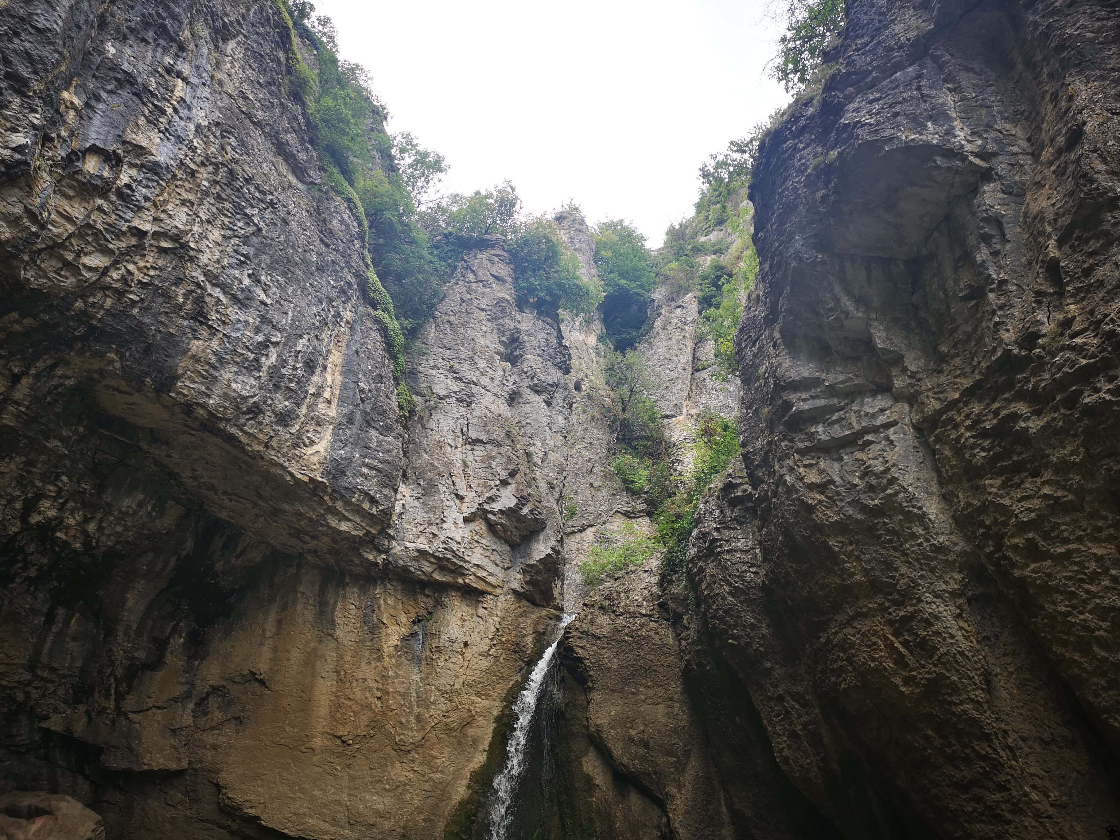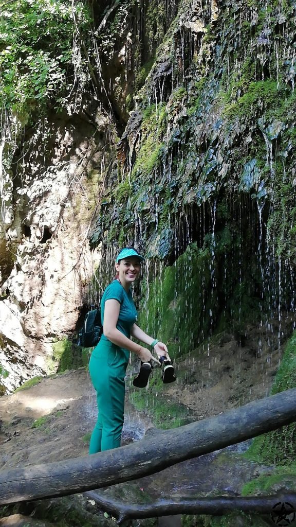 Daca sunteti genul mai sportiv si aveti incaltari de drumetie, puteti urca pe traseul din partea stanga, traseu pe trepte in stanca si podete de lemn. E un traseu foarte frumos care se face in aprox o ora si te poarta peste rau, catre o mica pestera cu lilieci, catre o alta mini cascada, apoi te muta pe partea dreapta a canionului si dupa o mica catarare pe stanci, te scoate in camp de unde urmeaza o coborare lina cu o priveliste frumoasa. Mi-a placut foarte mult acest traseu si vi-l recomand cu drag.