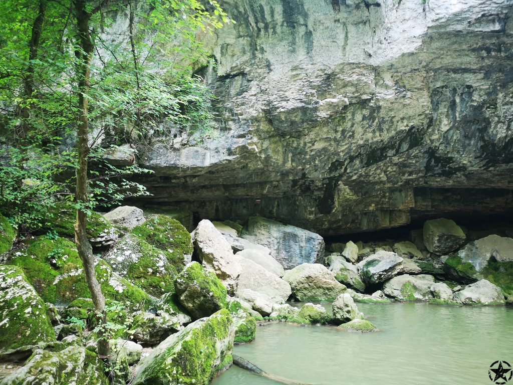 Continuam traseul lin catre a doua grota unde sunt plasate cateva banci intr-o mica poienita (aici se poate lua o mica pauza). Cea de-a doua grota, Vodopada Cave, poate fi vazuta doar dintr-o parte pentru ca din ea izvoraste un parau si nu perminte accesul in interior. Poate doar daca intri in parau poti vedea mai departe insa scaldatul e interzis pe toata suprafata parcului :(.