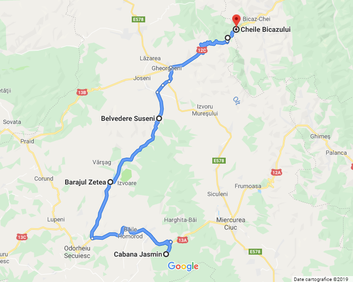 Plecam duminica, a treia zi, la ora 12 catre Cheile Bicazului pe traseul propus de proprietar: Satu Mare – Barajul Zetea – Gheorghieni – Lacul Rosu – Cheile Bicazului.