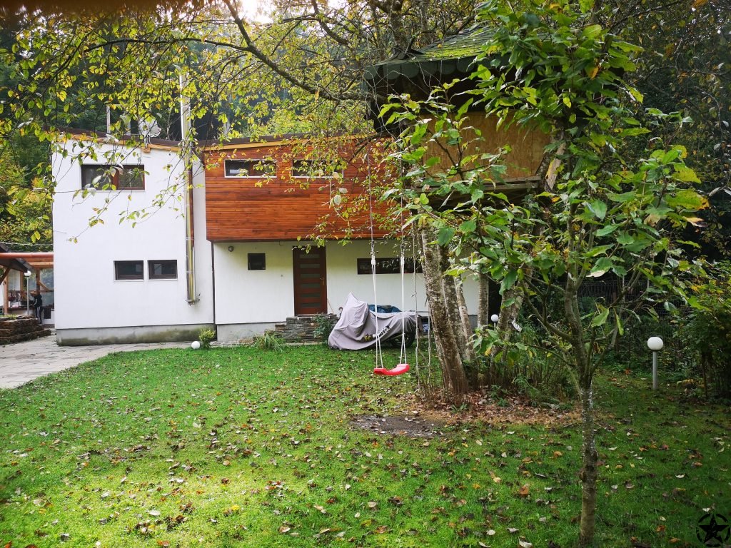 Dupa cateva cautari pe booking, airbnb si ceva site-uri cu pensiuni, am ales Cabana Jasmin, din Baile Chirui. Ne-au placut foarte mult pozele, structura cabanei pe brane, gradina verde, casuta din copac, padurea din jurul locatiei, zona de gratar si ciubarul. Cazarea de persoana pe 2 nopti a fost pana in 200 lei insa daca ii contactati direct pe proprietari si nu rezervati online, puteti negocia o reducere.