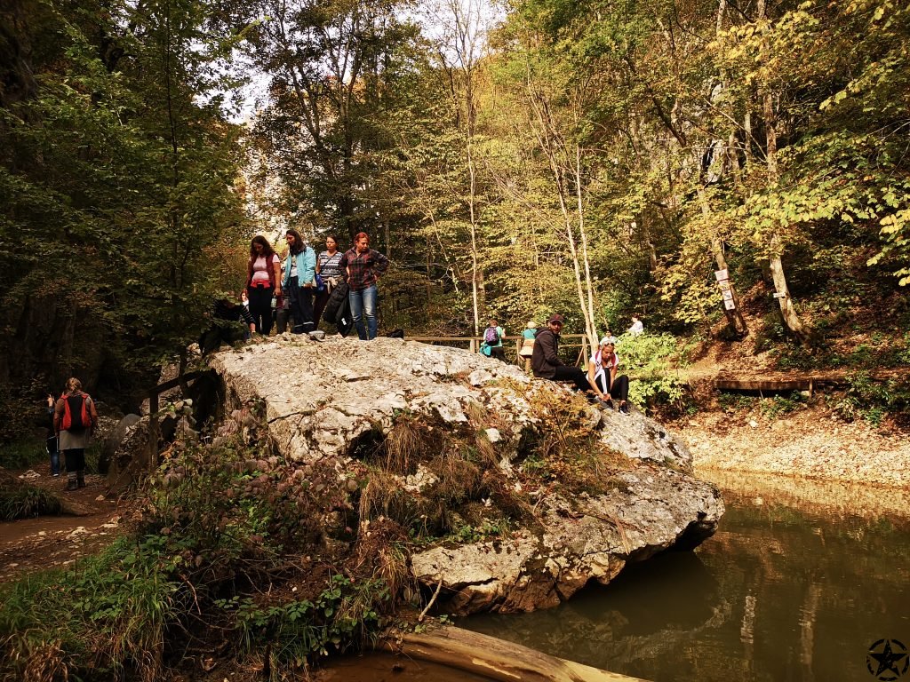 Coboram cu grija din Pestera Mare, ne mai odihnim putin apoi ne intoarcem pe acelasi traseu pana dam de marcajul banda galbena a traseului care urca prin padure care poarta numele de “Poteca Pionierilor”. Traseul e unul mai dificil si mai periculos. Urca pe o poteca ingusta pe stanca si pe alocuri intalnim lanturi, insa cu grija si atentie se inainteaza. E o urcare sustinuta de circa 200 m diferenta de nivel, insa o data ajunsi in partea de sus, se merge pe un drum forestier lin pana la masini. Nu e nimic de speriat.